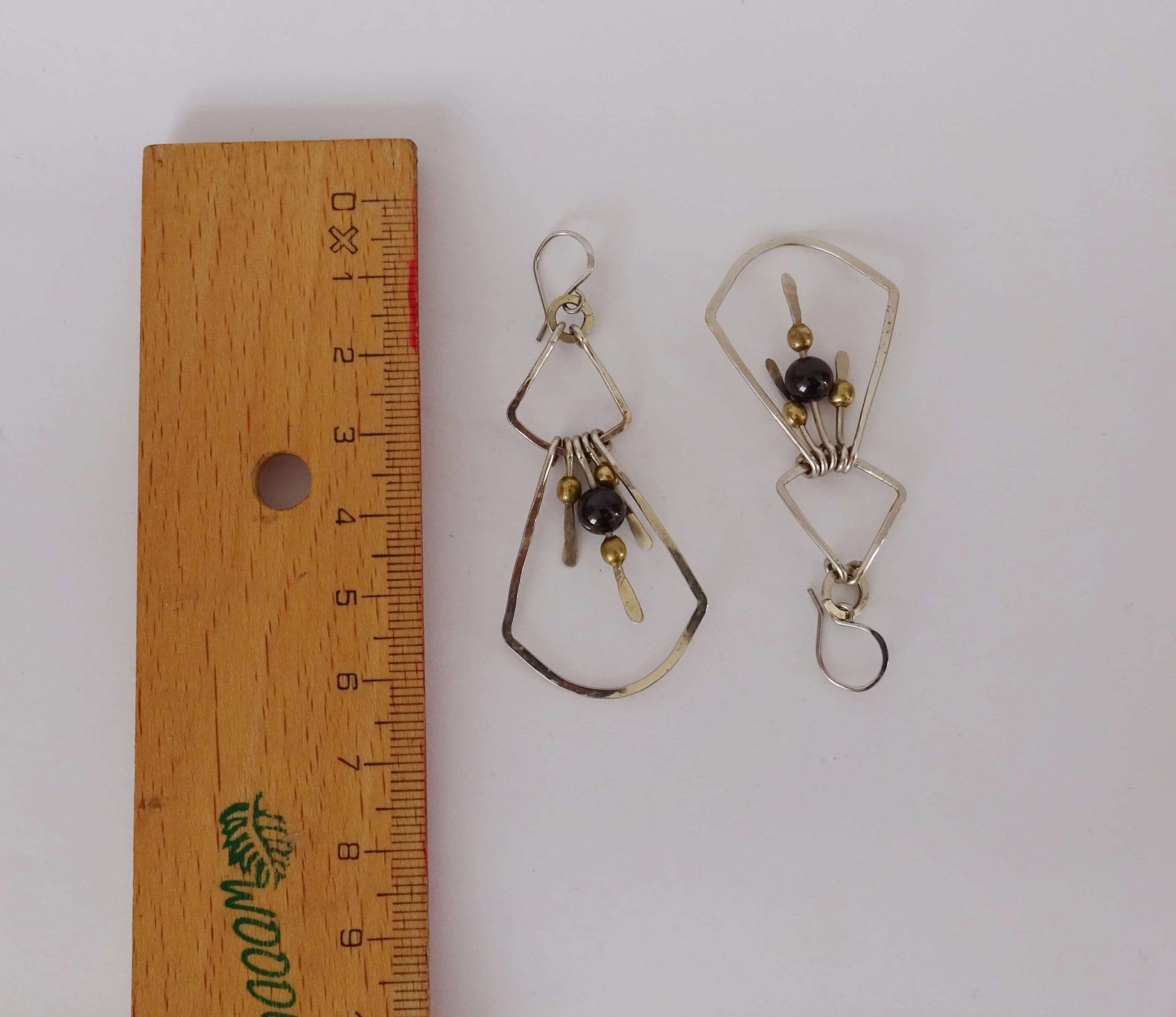 - En la creación de estos pendientes se utilizaron hilos de plata 930 en diferentes calibres y piedras naturales, los cuales fueron transformados a mano.