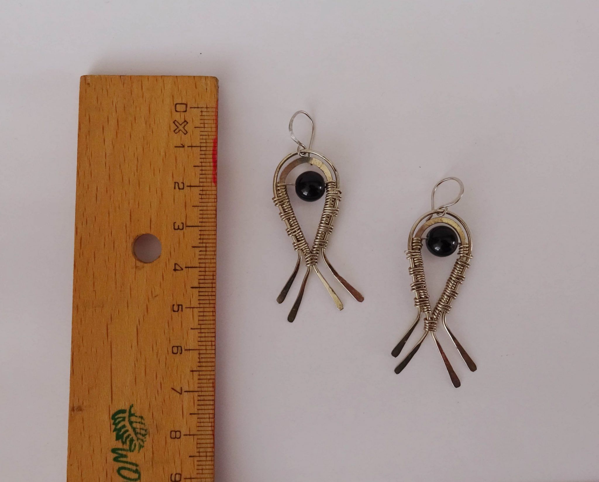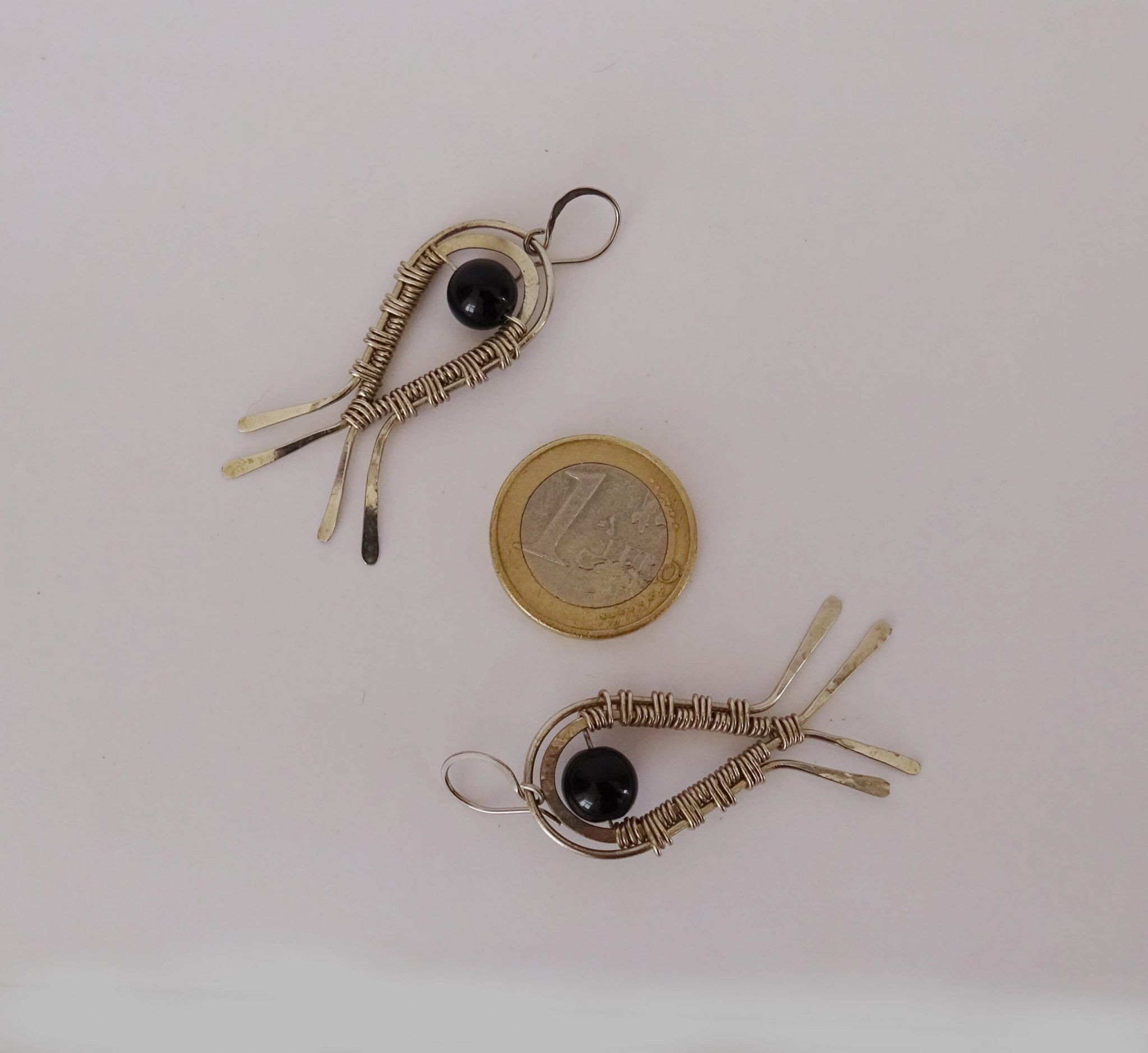 - En la creación de estos pendientes se utilizaron hilos de plata 930 en diferentes calibres y piedras naturales, los cuales fueron transformados a mano.
