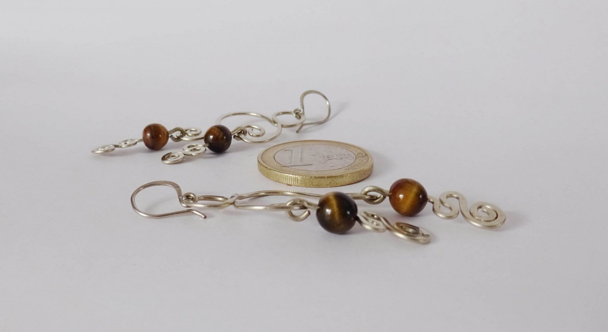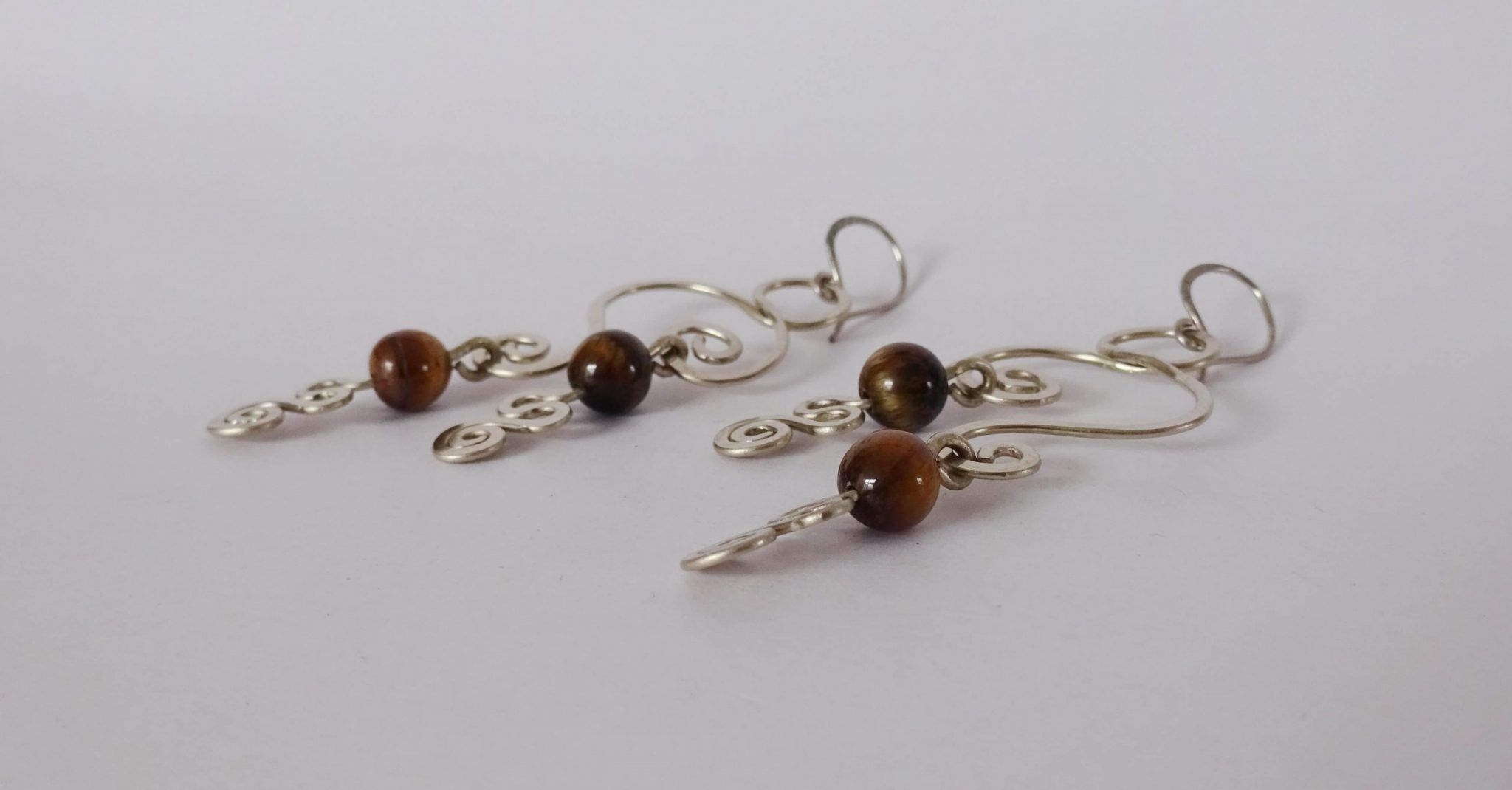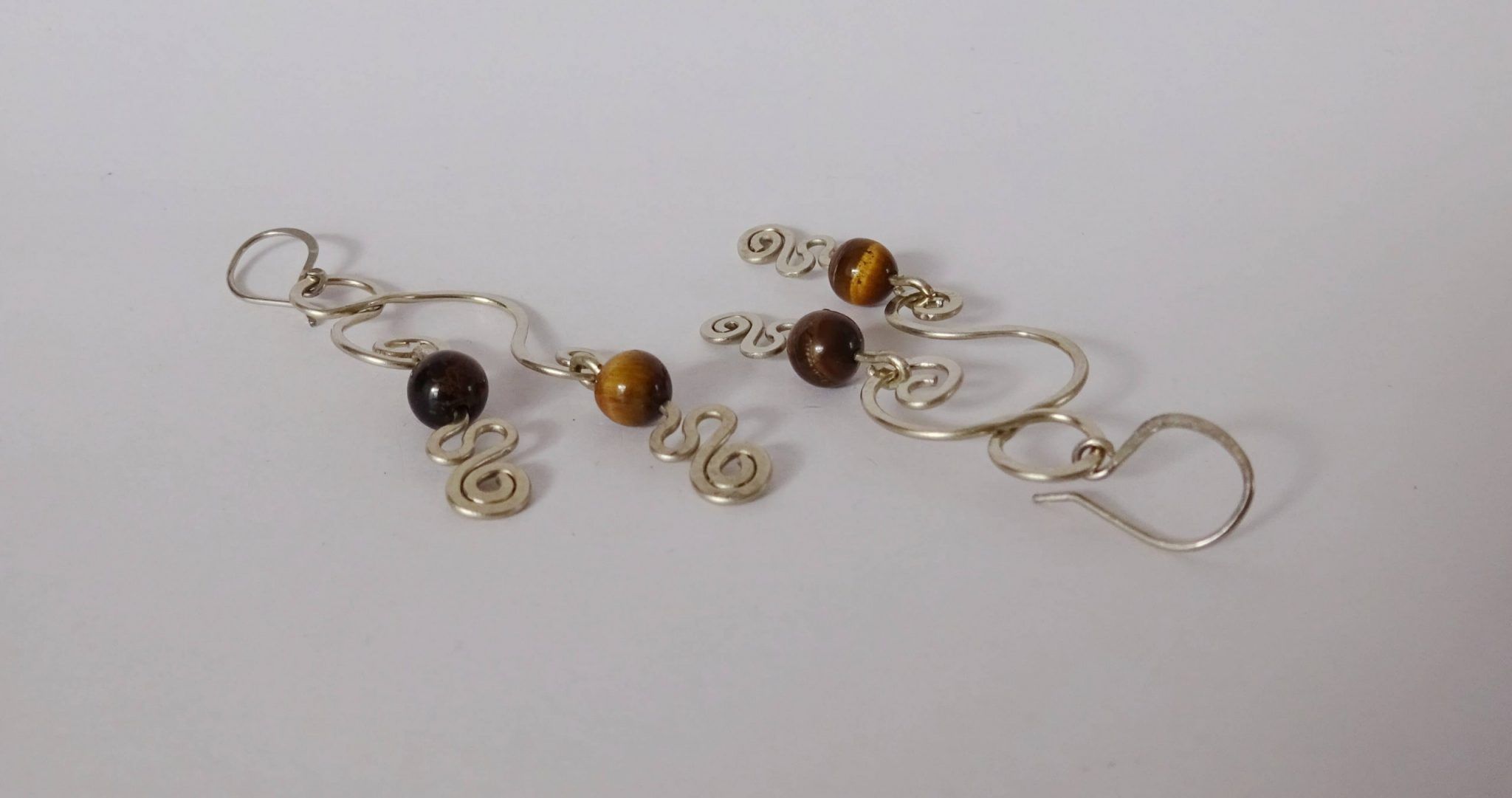 - En la creación de estos pendientes se utilizaron hilos de plata 930 en diferentes calibres y piedras naturales, los cuales fueron transformados a mano.